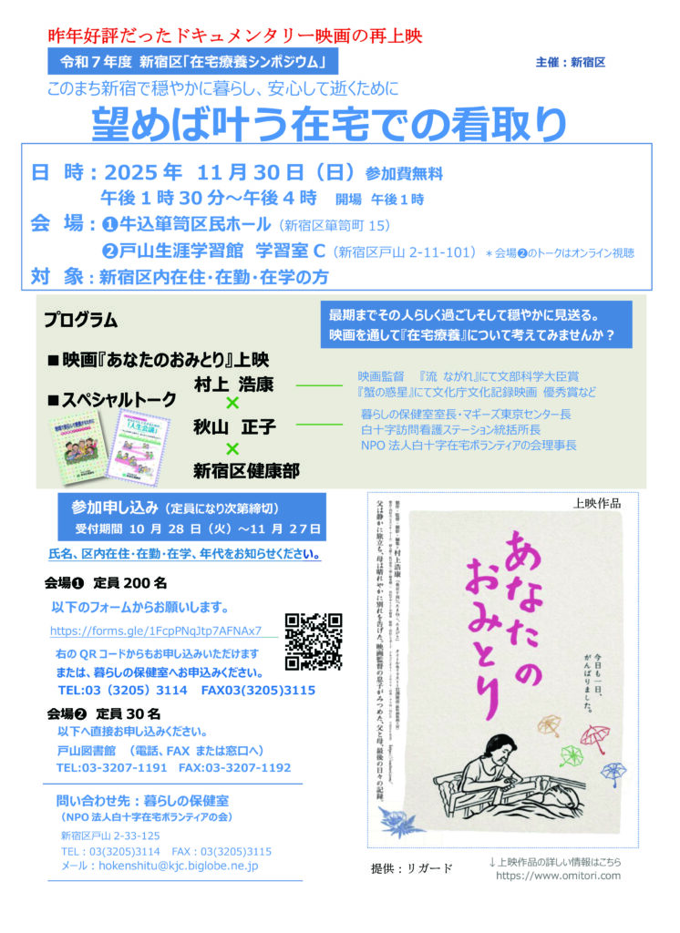 問合せ先:暮らしの保健室(NPO法人白十字在宅ボランティアの会)